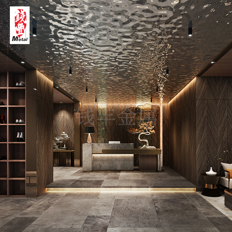 不銹鋼水波紋板作為吊頂裝飾材料的選擇,還有著許多其他優勢。首先,不銹鋼材質具有很高的耐久性和抗銹蝕性,不易受到環境濕度和溫度的影響,能夠長時間保持原有的美觀和功能。其次,不銹鋼水波紋板還具有很高的防火性能,能夠有效地阻止火災的蔓延,保障居住空間的安全。